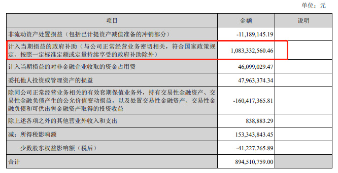 財(cái)報(bào)數(shù)據(jù)中,非經(jīng)常性損益高達(dá)8.95億元(去年同期只有1.65億元),甚至高于去年全年8.14億元的數(shù)值。其中最主要的部分為“政府補(bǔ)助”,高達(dá)10.83億元——來(lái)自政府的產(chǎn)業(yè)補(bǔ)貼,幾乎占了半年凈利潤(rùn)的一半。