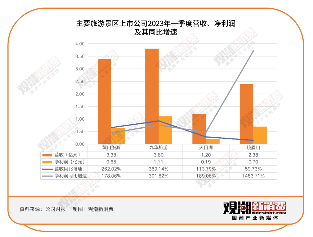 從“玩”來看,火熱的人潮給各個景區(qū)帶來了可觀的收入。黃山旅游、九華旅游、天目湖、峨眉山業(yè)績均在上漲,其中峨眉山的凈利潤更是暴漲將近15倍。