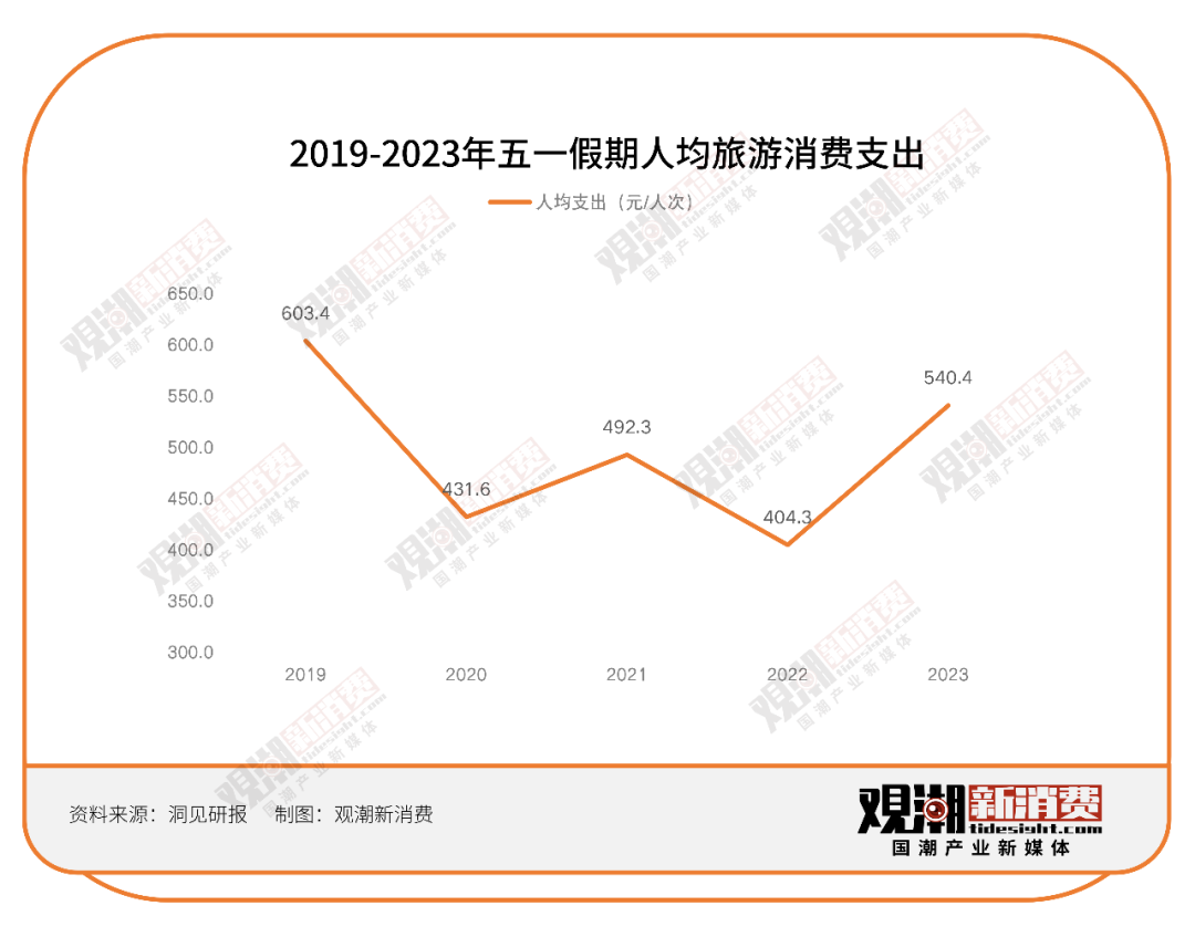 今年最火熱的五一假期,接待的游客人次為2.74億,同比增長70%。這一數(shù)據(jù)遠遠超過了2020年至2022年疫情期間的數(shù)據(jù),甚至超過了2019年1.95億的游客人次。然而,與2019年相比,今年五一假期人均旅游消費僅為540元,低于2019年的603元。而端午節(jié)假期,文旅部給出的數(shù)據(jù)顯示,相比2019年出行人數(shù)增長13%,但總消費卻下降5%,考慮到這幾年物價的上漲因素,實際出游人均消費大幅下跌20%左右。