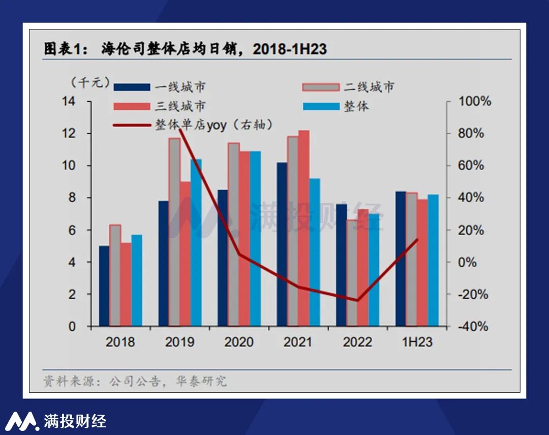 單店方面,整體單店的日均營業(yè)額從2022年的7.2千元上升到了8.2千元。分城市來看,一線二線三線城市酒館的日均分別為8.4/8.3/7.9千元,對比去年6月的7.3/6.6/7.9千元有小幅度上升。分直營和特許合作酒館來看,今年半年日均為7.9/9.0千元,環(huán)比去年的直營酒館7.2千元,也有小幅度上升。