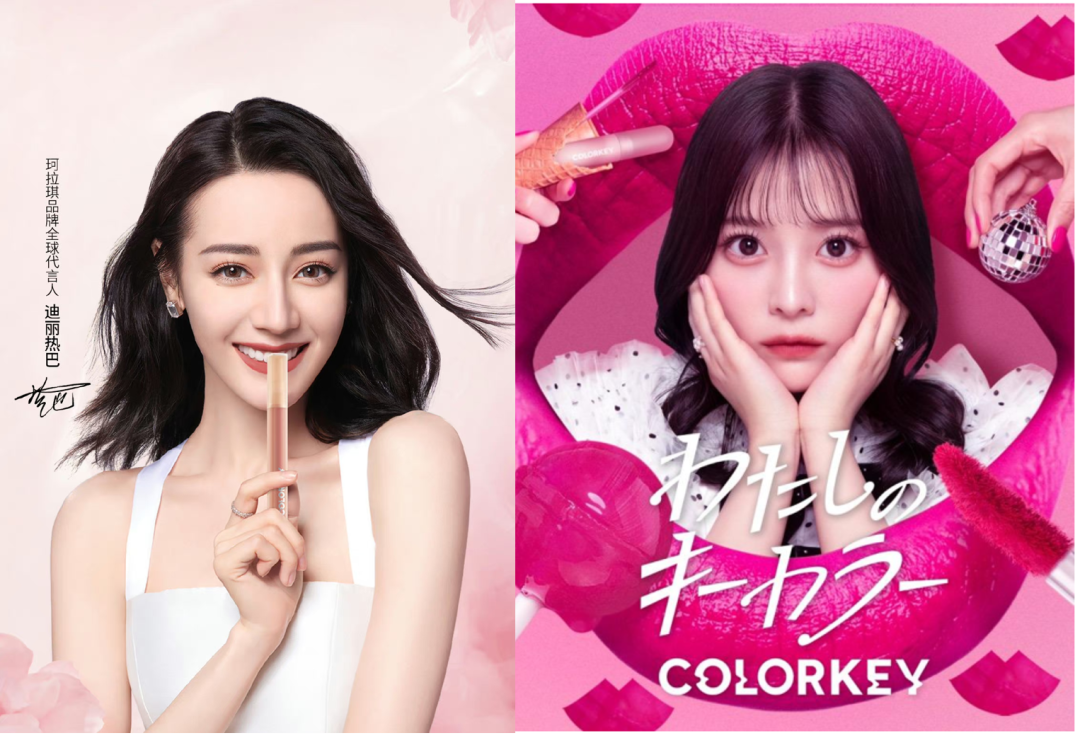 圖片說(shuō)明:左圖為colorkey全球代言人迪麗熱巴,右圖為日本市場(chǎng)形象代言人齊藤渚