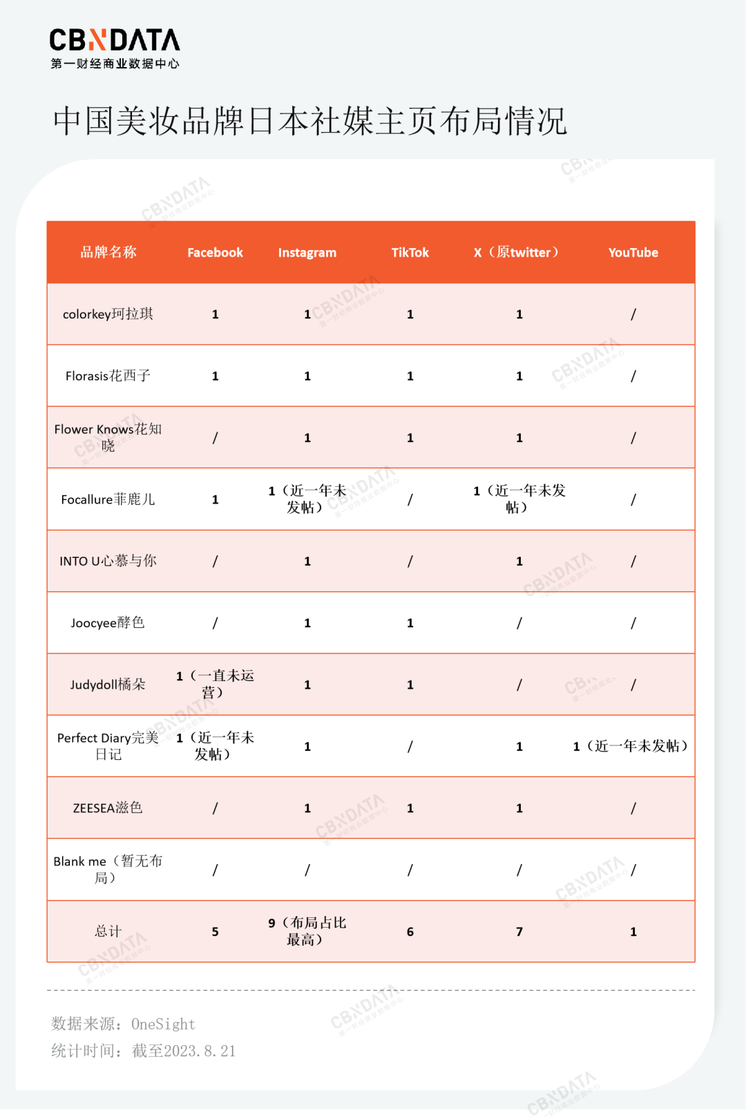 國(guó)內(nèi)品牌駕輕就熟的社交媒體營(yíng)銷(xiāo)、達(dá)人種草等方式也是品牌出海的重要營(yíng)銷(xiāo)手段。出海品牌數(shù)據(jù)營(yíng)銷(xiāo)技術(shù)服務(wù)商O(píng)neSight觀(guān)察到,中國(guó)美妝品牌在日本社媒的布局主要集中在Instagram、Twitter、TikTok三大平臺(tái),其中Instagram幾乎是品牌首選平臺(tái)。