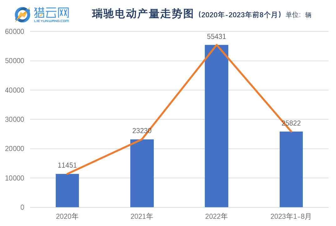 據(jù)賽力斯年報(bào)信息,2020年、2021年、2022年、以及2023年前8個(gè)月,瑞馳電動(dòng)工廠的產(chǎn)量分別為1.15萬(wàn)、2.32萬(wàn)、5.54萬(wàn)以及2.58萬(wàn)。據(jù)相關(guān)數(shù)據(jù)統(tǒng)計(jì),2022年瑞馳電動(dòng)上險(xiǎn)量為29100輛,位居國(guó)內(nèi)新能源商用車行業(yè)第二。