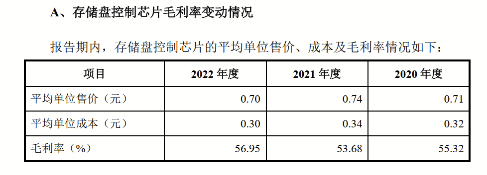 具體看,2020年,存儲控制芯片售價0.71元/顆,銷售收入為7545.64萬元。2022年售價0.7元/顆時,銷售額翻了一倍,達(dá)1.36億元。