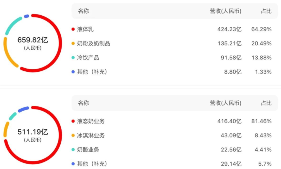 伊利(上)與蒙牛(下)業(yè)務(wù)對(duì)比
