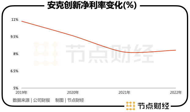 財(cái)報(bào)數(shù)據(jù)顯示,就在安克創(chuàng)新無線音頻類與智能創(chuàng)新兩大新業(yè)務(wù)快速成長的同時(shí),公司的凈利率從2019年的10.85%降到2022年的8.31%,凈下滑超過2.5個(gè)百分點(diǎn)。