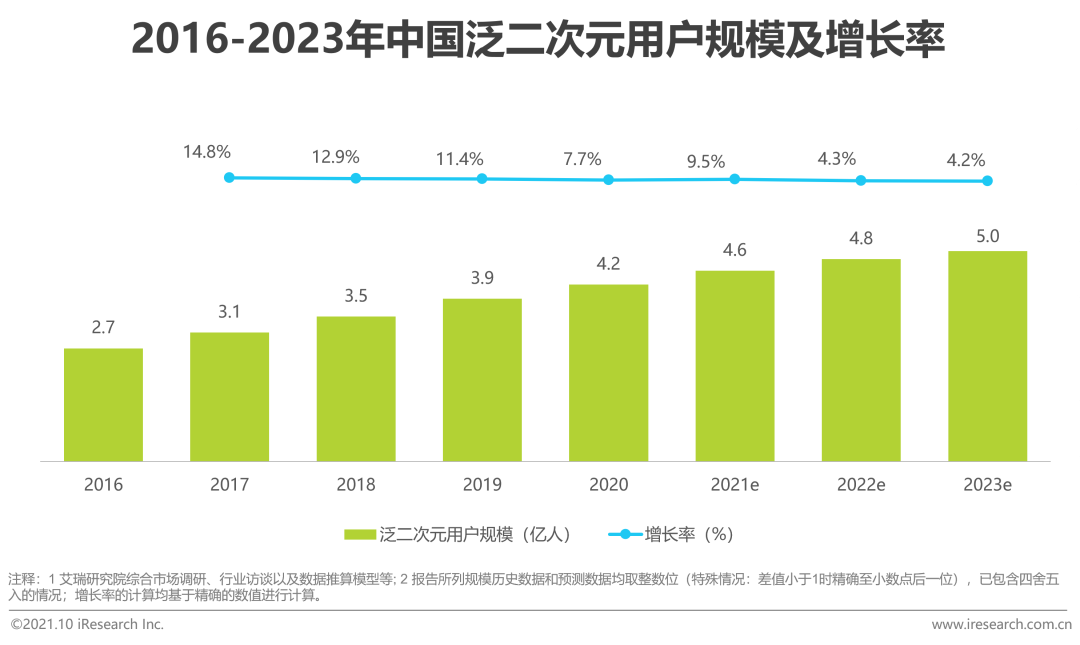 以二次元為例,相關(guān)報告顯示,中國的二次元產(chǎn)業(yè)已經(jīng)步入爆發(fā)期。2020年整體市場規(guī)模達(dá)可達(dá)一千億,年增速達(dá)到32.7%。泛二次元用戶預(yù)計2023年達(dá)到5億。