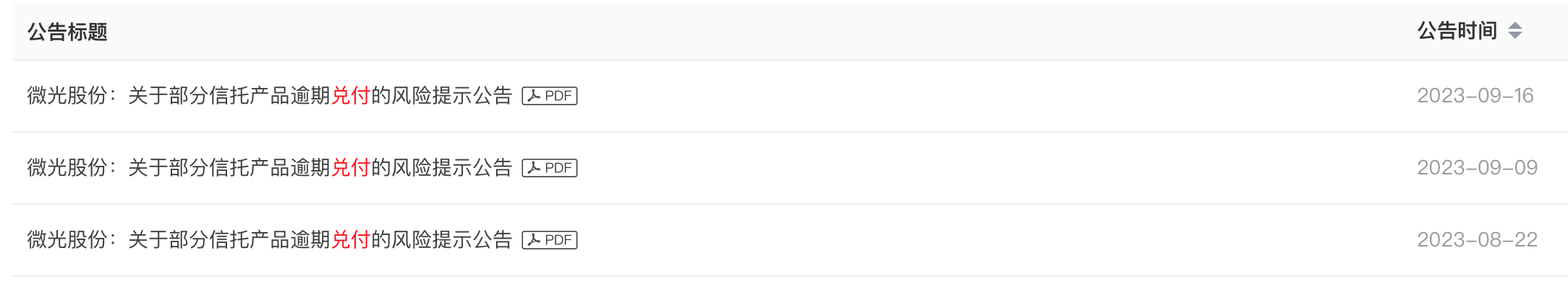 繼續(xù)8月21日、9月8日自曝“踩雷”之后,微光股份(002801.SZ)9月15日盤后披露稱,公司購買的信托產(chǎn)品庚澤1號1億元、圓融1號5000萬元、匯聚金1號5000萬元,全資子公司微光技術(shù)購買的圓融1號3000萬元,到期后尚未收到本金及投資收益,以上產(chǎn)品受托人為中融國際信托有限公司(以下簡稱“中融信托”) 。微光股份表示在聯(lián)系各相關(guān)方,督促中融信托盡快向公司及子公司兌付已到期信托產(chǎn)品投資本金及收益,同時準(zhǔn)備相關(guān)材料,通過各類法律措施以最大程度減少潛在損失。