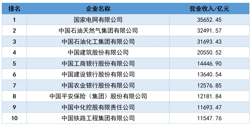 此榜單中,營收進入“千億俱樂部”的企業(yè)繼續(xù)擴容,占比首次超過50%,數(shù)量增至254家,較去年增加10家;萬億級企業(yè)達到16家。其中,國家電網(wǎng)、中國石油、中國石化營收超過3萬億元,中國建筑營收超過2萬億元。