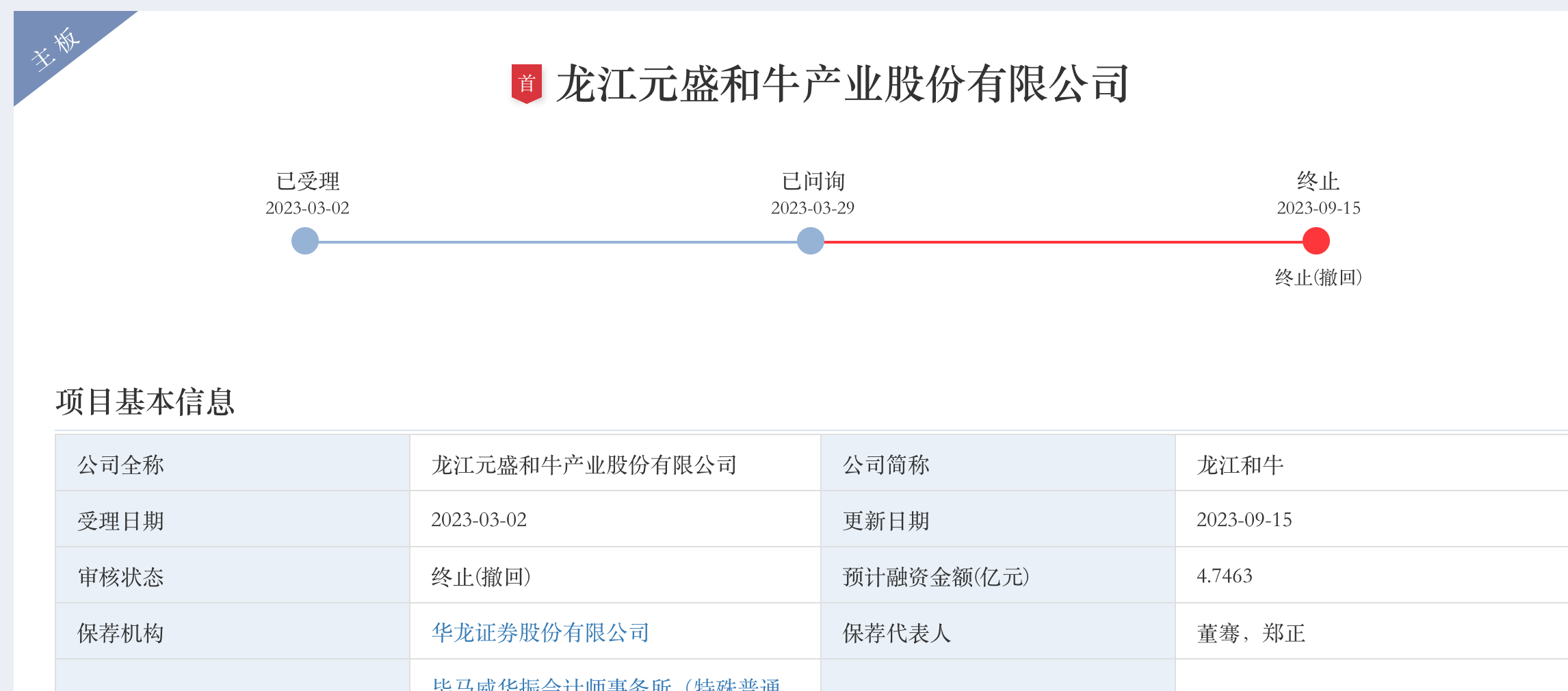 據(jù)深交所披露,龍江元盛和牛產(chǎn)業(yè)股份有限公司(下簡稱:龍江和牛)目標(biāo)主板,3月29日進(jìn)入問詢環(huán)節(jié),公司在6月26日還披露了回復(fù)意見,時隔近半年,該公司突向交易所提交了撤回首發(fā)的申請,其保薦人華龍證券也同步選擇了撤回,由此,龍江和牛的IPO之旅告一段落。