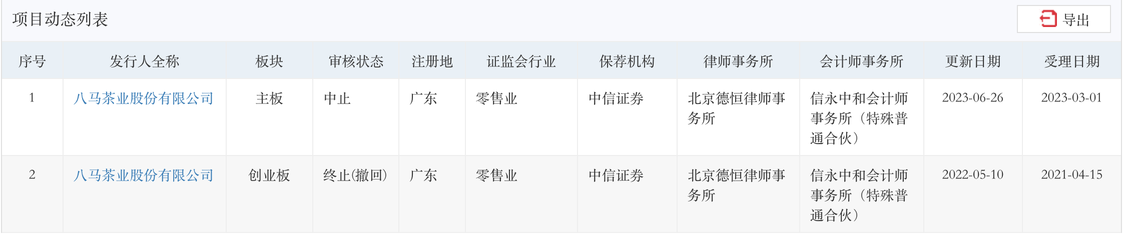除了上述外,還有經(jīng)營飲品類、口感顆粒類、果醬類和預(yù)包裝新茶飲等產(chǎn)品的鮮活飲品,主要產(chǎn)品包括飲品濃漿、風(fēng)味糖漿、飲品小料等的德馨食品,二刷的八馬茶業(yè),等等。需要指出的是,八馬茶業(yè)2023年6月26日因更新財務(wù)資料,主動申請中止發(fā)行上市審核程序。
