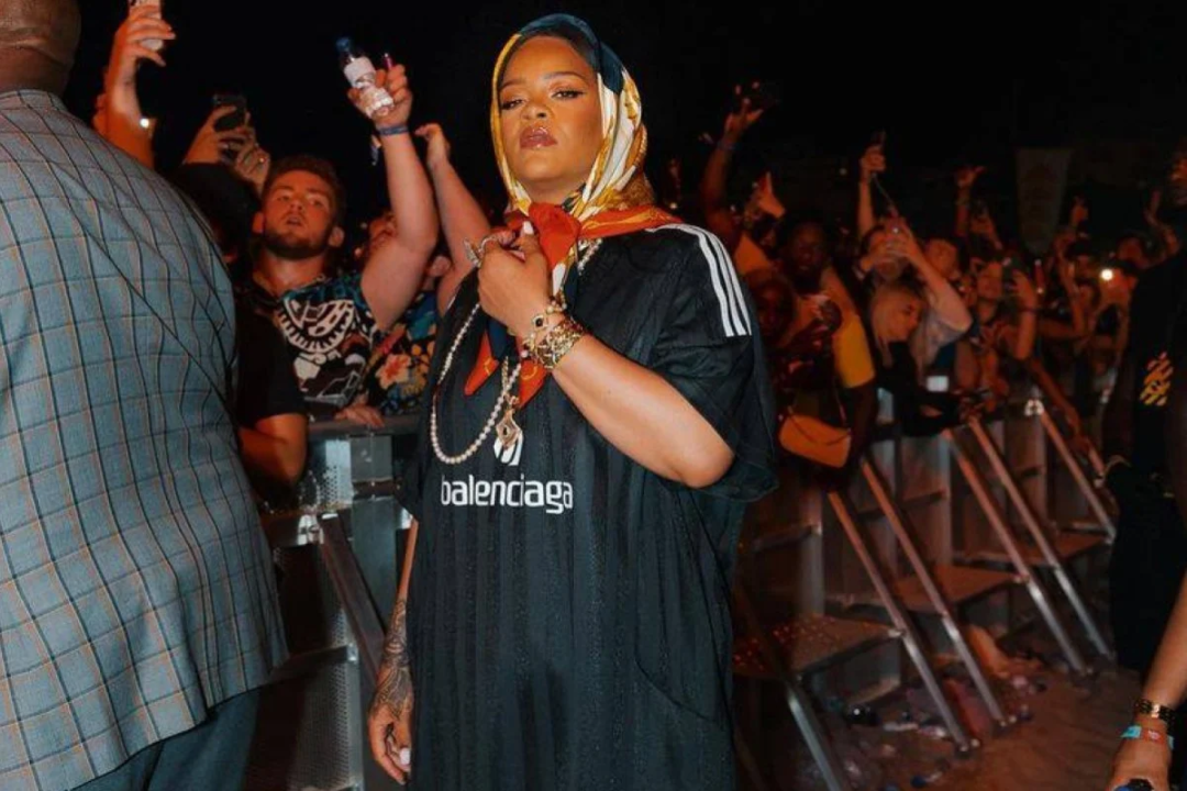 蕾哈娜在參加葡萄牙音樂節(jié)時(shí),也穿了這個(gè)這款球衣,不過更多走她自己的風(fēng)格,例如加上了頭巾和大金鏈子。