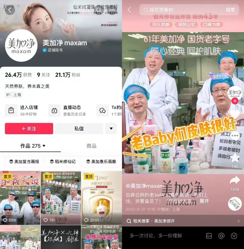 9月19日,有著61年歷史的老國(guó)貨美加凈開(kāi)啟了其在抖音的第7場(chǎng)直播,和其他美妝護(hù)膚品類主播大多為高顏值、年輕人不同,本場(chǎng)直播由4位年齡總和超過(guò)200歲的研發(fā)博士首次出鏡擔(dān)任主播。