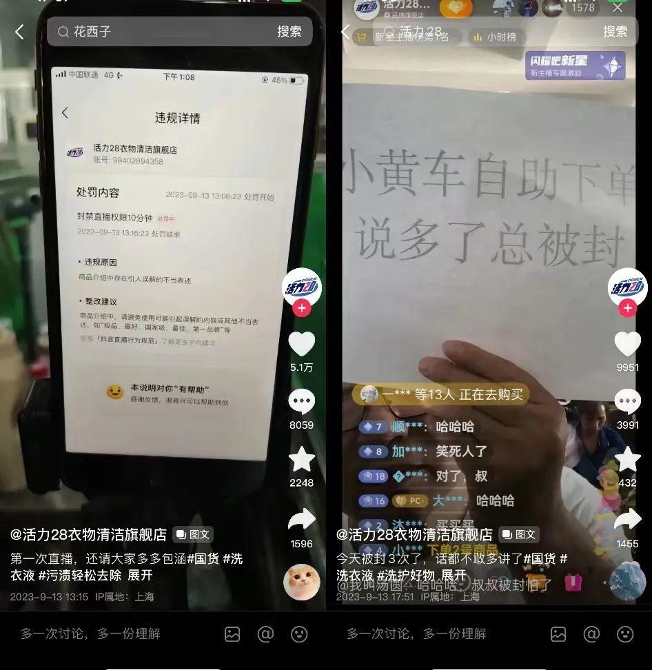 公開(kāi)消息顯示,目前@活力28衣物清潔旗艦店上進(jìn)行直播的“三個(gè)老頭”,屬于成都意中洗滌用品有限公司員工,該公司為活力28品牌母公司湖北活力集團(tuán)有限公司的代加工企業(yè)。因此,這場(chǎng)由“三個(gè)老頭”主導(dǎo)的、席卷全網(wǎng)的活力28直播,也被視為代工廠清倉(cāng)式自救行為。