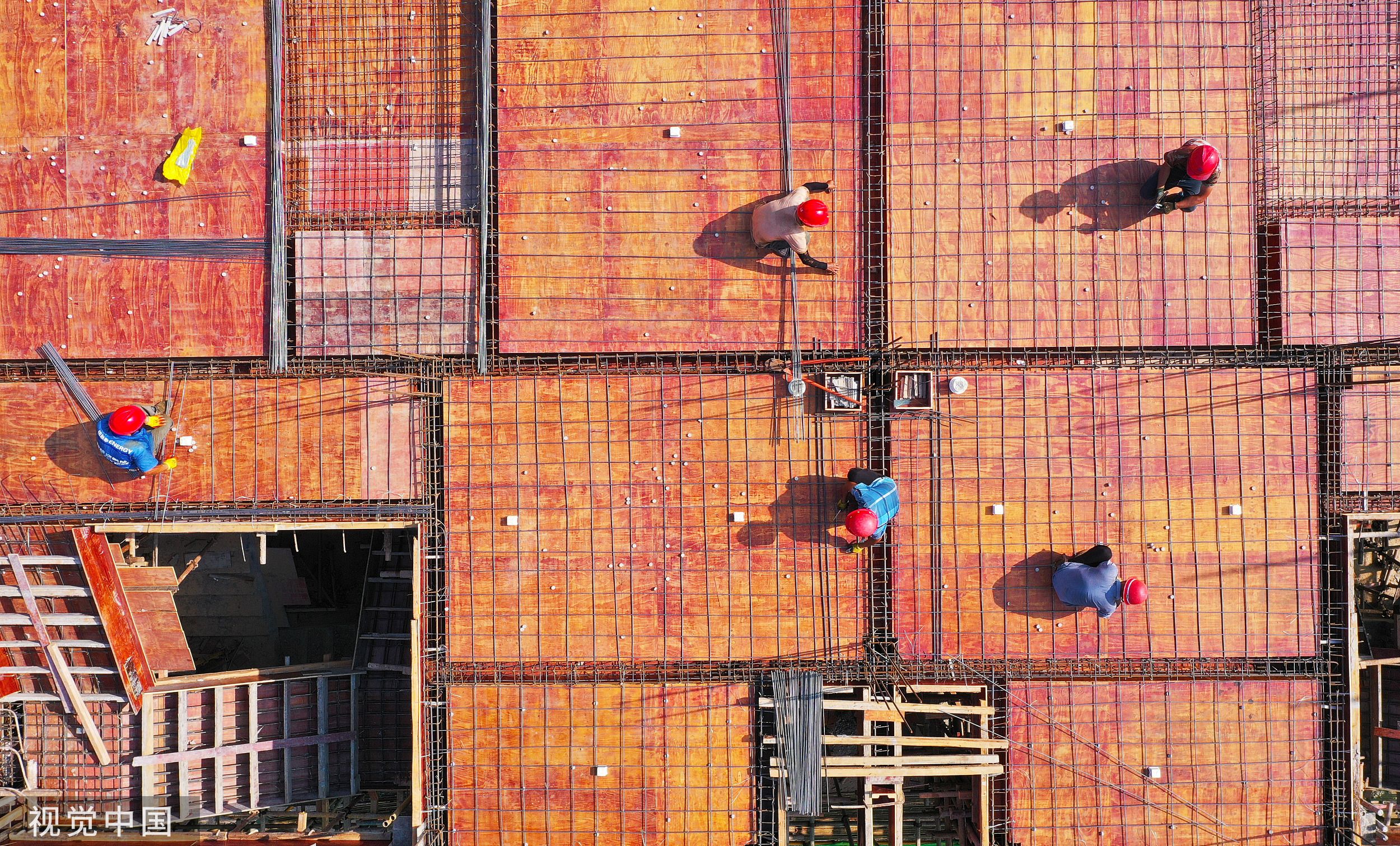 2023年9月24日,湖南永州,新田縣芙蓉幼兒園建設(shè)項(xiàng)目工地,工人們正在加緊施工。圖片說(shuō)明:人民視覺(jué)
