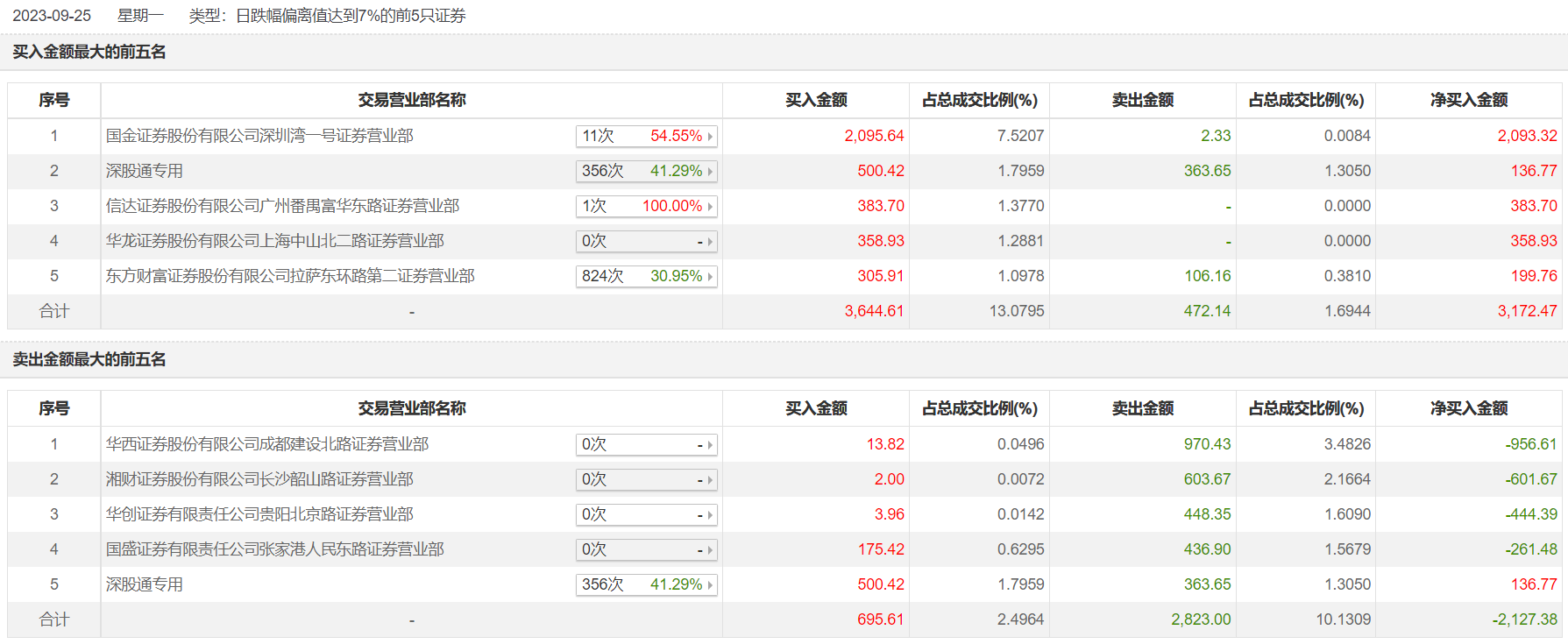 具體來看,華西證券成都建設(shè)北路證券營業(yè)部、湘財(cái)證券長沙韶山路證券營業(yè)部分別賣出970.43萬元、603.67萬元;國金證券深圳灣一號證券營業(yè)部、深股通專用分別買入2095.64萬元、500.42萬元。