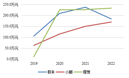 圖1:“蔚小理”人均營(yíng)收變化圖資料來源:穆勝咨詢、蔚來財(cái)報(bào)、小鵬財(cái)報(bào)、理想財(cái)報(bào)