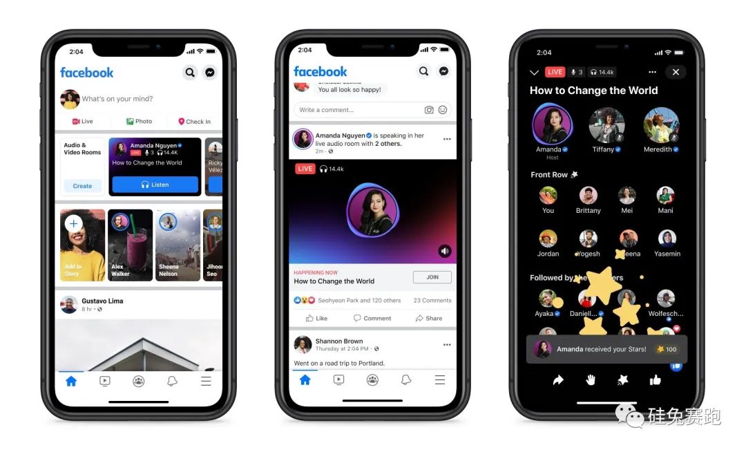 Facebook在2021年6月推出了Facebook Live Audio Rooms,公眾人物和內(nèi)容創(chuàng)作者可以發(fā)起語音聊天,任何用戶都可以收聽,甚至有網(wǎng)友調(diào)侃,小扎此前在Clubhouse聊天室的出現(xiàn)就是來”偷師”的。