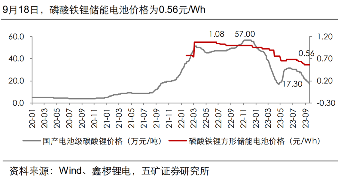 9月17 日-23日,國內(nèi)新增28個(gè)新型儲(chǔ)能項(xiàng)目招標(biāo)均價(jià)為1.04 元/Wh。如以此價(jià)格計(jì)算,5500GW,意味著56,000億投資。