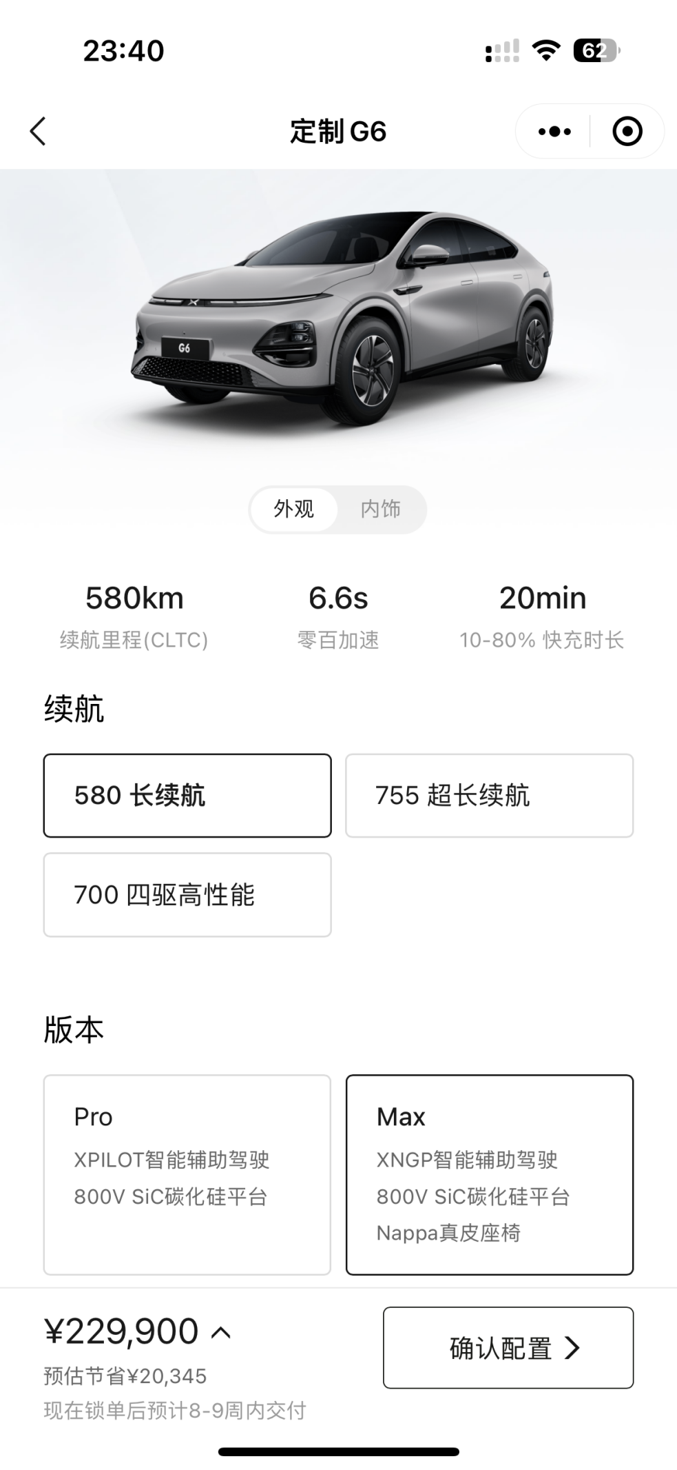 根據(jù)小鵬汽車APP的信息顯示,G6 MAX版本需等待8-9周時(shí)間。據(jù)界面新聞報(bào)道,此前小鵬G9的日產(chǎn)量僅有30輛,明顯低于預(yù)期。先前有大供給量的廠商不再信任小鵬,G6的生產(chǎn)只能尋求其他產(chǎn)能并沒有飽和的廠商。