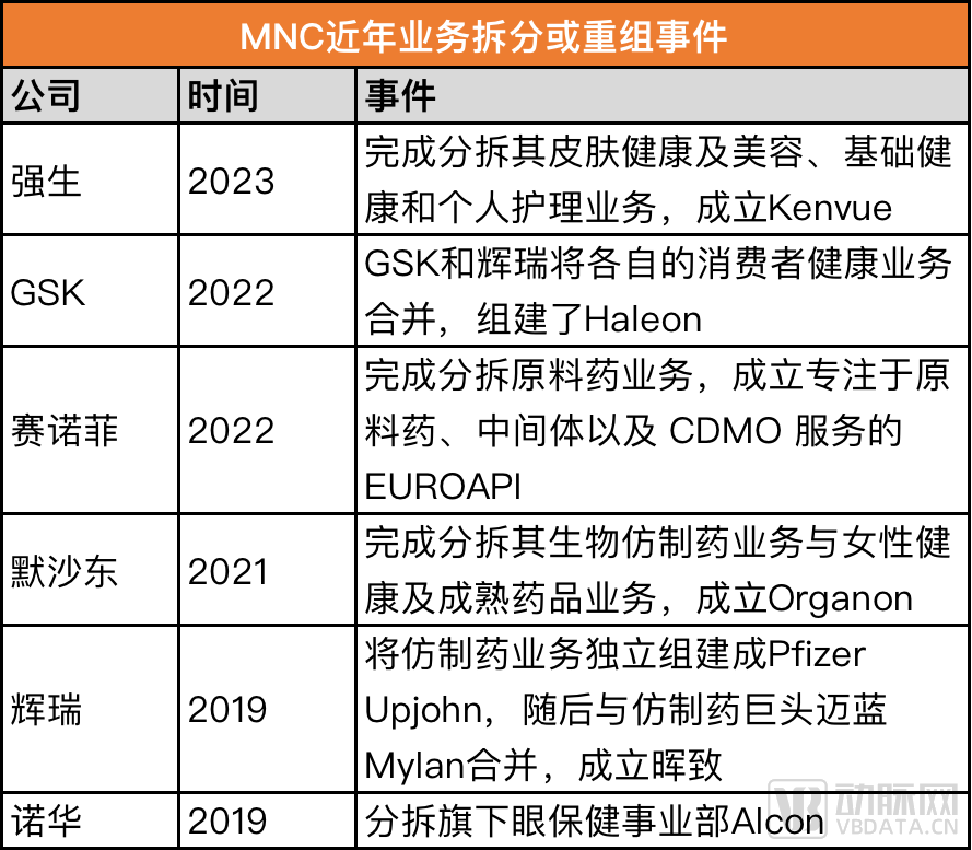 大型制藥公司對仿制藥業(yè)務(wù)或醫(yī)療健康業(yè)務(wù)進行調(diào)整并不少見。去年GSK剝離了其消費者健康業(yè)務(wù),后者以Haleon獨立運營;2021年,默沙東分拆其生物仿制藥業(yè)務(wù)與女性健康及成熟藥品業(yè)務(wù),成立Organon;2019年,輝瑞Upjohn和Mylan宣布合并的公司名為暉致,目前暉致本身也在為增長戰(zhàn)略做進一步拆分。
