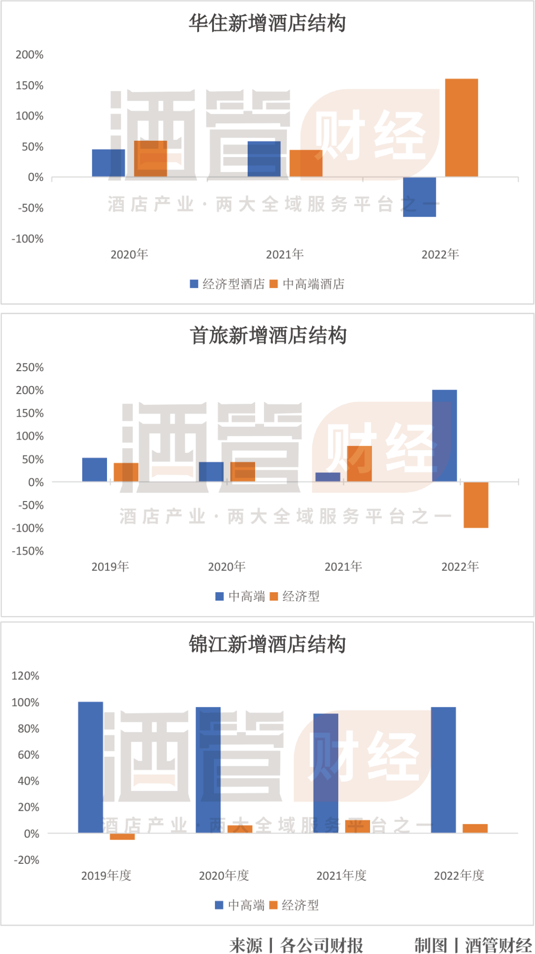 去年華住、首旅分別關停了142家、298家經(jīng)濟型門店,但分別新增了363家、133家中高端門店;錦江最近4年新增酒店中,經(jīng)濟型門店占比不超過10%。