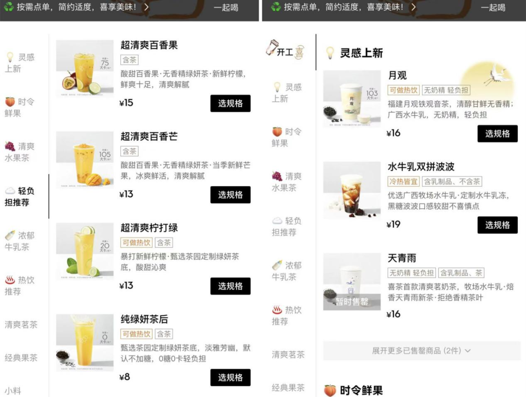 另一方面,考慮到縣城消費者對價格敏感度較高,此前“3”字開頭售價的喜茶,來到縣城后多款產(chǎn)品也迎來“1”字開頭時代,而純綠妍茶后的價格更是僅有8元。不僅如此,喜茶在縣城新店開業(yè)期間還會推出9元請您喝喜茶的活動。