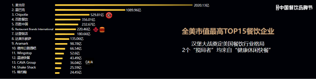先給大家看一張表,這張表是全美市值TOP15的餐飲企業(yè)。