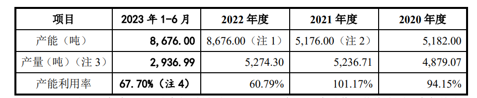 隨著產能的大幅提升,格林生物2022年和2023年1-6月的產能利用率降低至60.79%、67.7%。