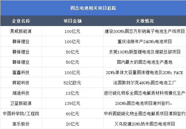 百億項目落地已經(jīng)成為了這幾年鋰電池行業(yè)流量最高的新聞,在固態(tài)電池方面也是如此。