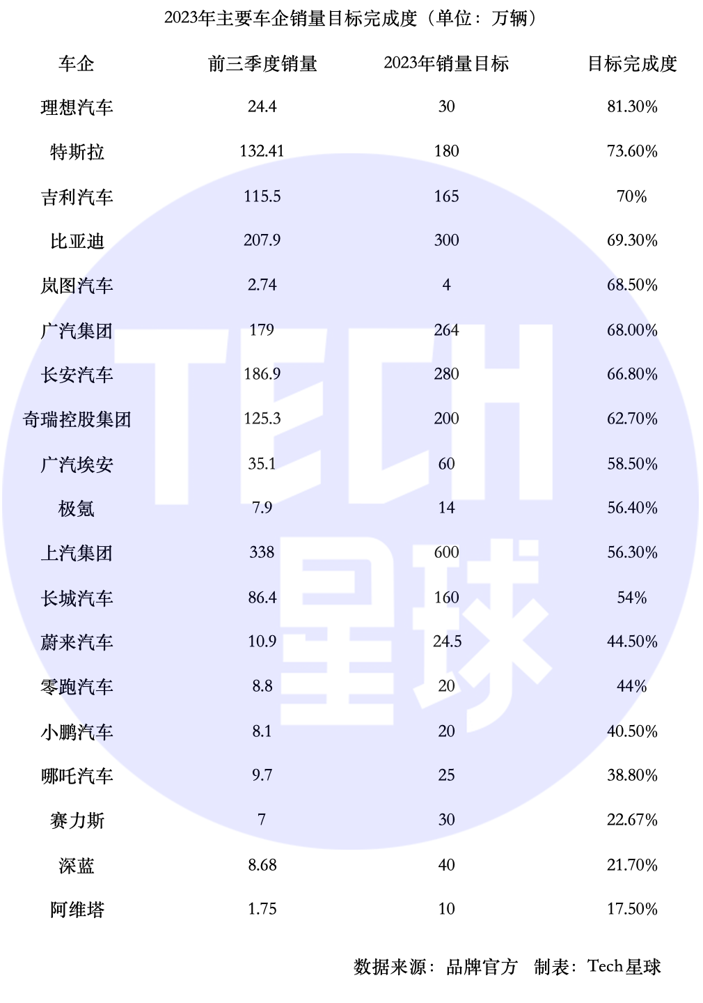 圖注:2023年主要車企年度銷量目標完成率。