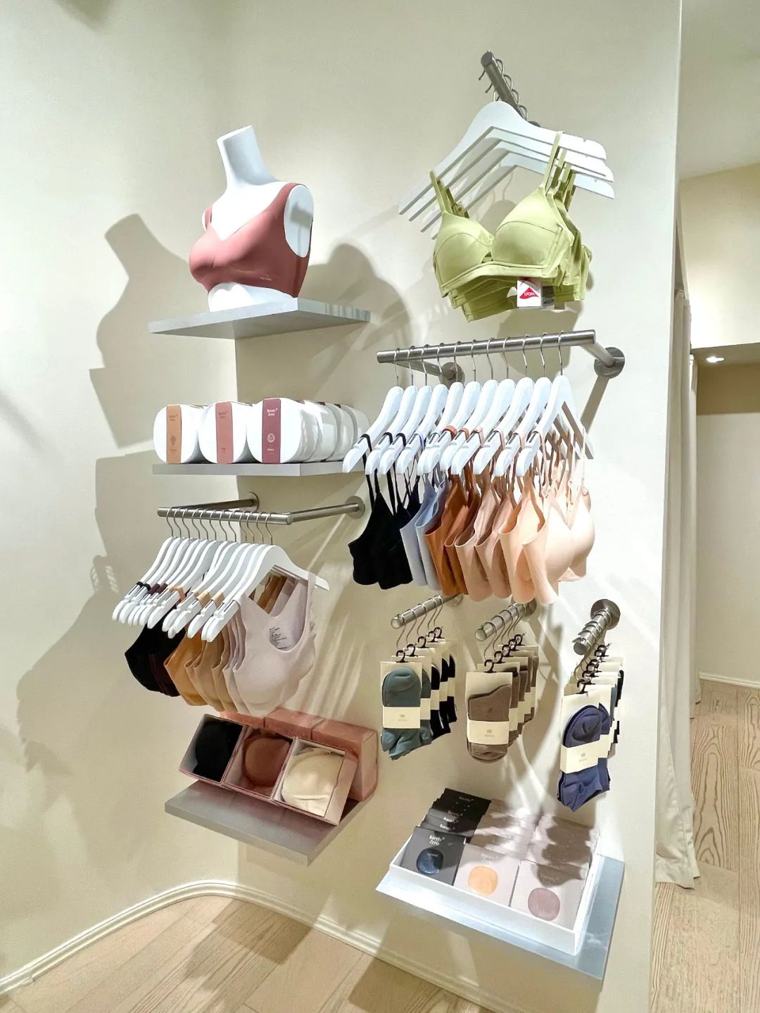 “內(nèi)外”門店裝修的主色調(diào)采用白色,搭配暖調(diào)燈光,店內(nèi)陳列內(nèi)衣、家居服、運(yùn)動(dòng)服等全線產(chǎn)品。門店產(chǎn)品也延續(xù)了偏高端的定位,熱銷文胸單價(jià)多為39至49美元,定價(jià)最高的一款超過(guò)100美元。