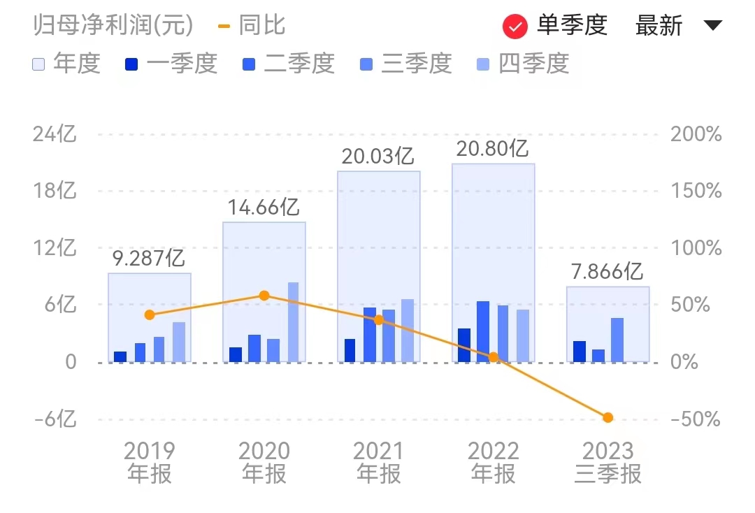 單看第三季度,盡管環(huán)比有所改善,但卻出現(xiàn)增收不增利的情況,單季實(shí)現(xiàn)營業(yè)收入232.99億元,同比上漲30.04%,而歸母凈利潤4.61億元卻同比下滑22.06%。