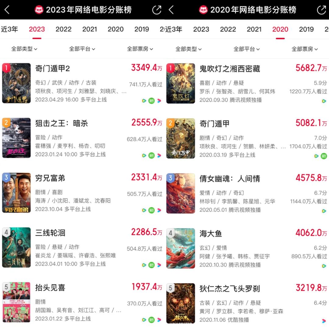 但到了今年,一切突然不一樣了。焦慮、無奈、甚至惱火,成為網(wǎng)大人口中的關(guān)鍵詞。截至目前,今年分賬票房過千萬的網(wǎng)絡(luò)電影僅25部,而2020-2022年,這個數(shù)字分別是73、68和49。