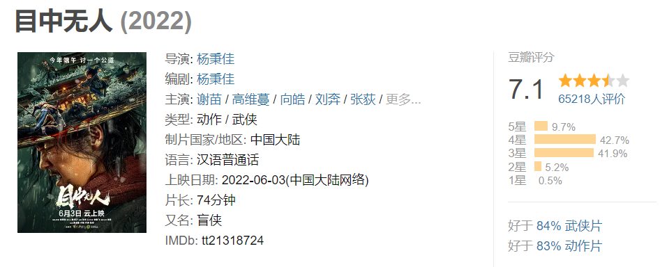 小娛發(fā)現(xiàn),除了愛奇藝的“云影院”,優(yōu)酷也在去年推出“超級首映”,騰訊也推出了“云首發(fā)”廠牌。平臺的作用從早期的引導(dǎo)、扶持,變?yōu)橹鲗?dǎo)、主控、主動篩選。這種強調(diào)院線配置的電影也取得過不錯的成績,《目中無人》《東北警察故事2》的豆瓣評分都在7分以上。