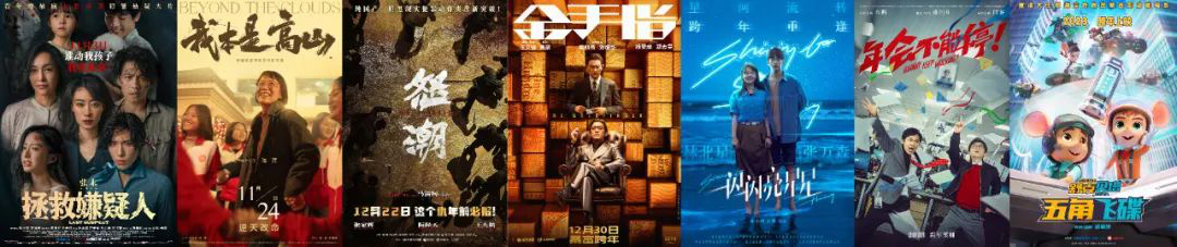 隨后便是前文提到的《三大隊》,以及同一個周末上映的《敦煌英雄》《怒潮》。前者是“中國少年宇宙”首部真人電影,歷史題材在一堆犯罪類型片中較為少見。行至跨年檔,《潛行》熱度可觀,《金手指》因梁朝偉劉德華聯(lián)手引發(fā)關(guān)注,大鵬主演的《年會不能停!》是賀歲檔標(biāo)配喜劇,《一閃一閃亮星星》由網(wǎng)劇原班人馬創(chuàng)作,有一定粉絲基礎(chǔ)。