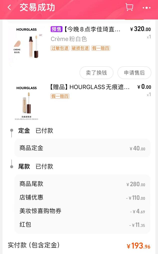 比如,潘哥發(fā)現(xiàn),加購(gòu)兩件昂貴商品后,使用淘寶“滿7000減580”優(yōu)惠,原價(jià)320元的HourGlass口紅,到手價(jià)約194元,便宜了126元。