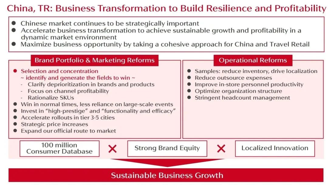 基于以上動態(tài)的市場背景,資生堂在中國市場開啟業(yè)務轉型,以建立彈性和盈利能力。主要方向聚焦在兩個方面: