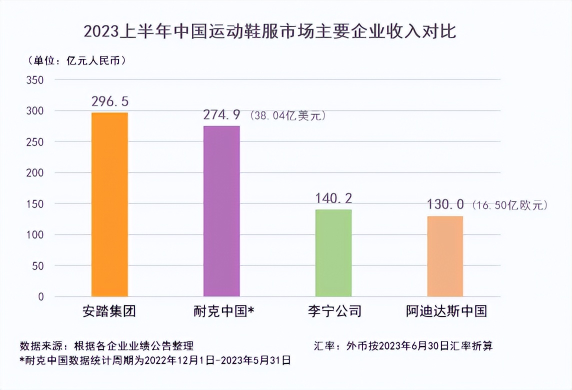 據(jù)統(tǒng)計(jì),今年上半年,耐克中國(guó)、阿迪達(dá)斯中國(guó)以及四大國(guó)產(chǎn)運(yùn)動(dòng)品牌安踏、李寧、特步、361度共創(chuàng)收約950億元,其中,四大國(guó)產(chǎn)運(yùn)動(dòng)品牌總營(yíng)收544.99億元,占比達(dá)57%;凈利潤(rùn)同比增長(zhǎng)19%,均創(chuàng)近年新高。