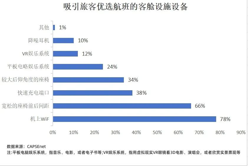 CAPSE發(fā)布《2020年國內(nèi)航司機上WiFi調(diào)研報告》顯示,空中WiFi超越了座椅間距、充電端口等考量因素,成為了吸引旅客選擇航班的首要設施。
