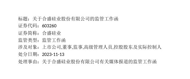 該事件迅速引起了監(jiān)管層關(guān)注,11月13日,上交所對合盛硅業(yè)下發(fā)了監(jiān)管工作函,涉及對象包含上市公司、合盛硅業(yè)實(shí)際控制人以及公司高管。