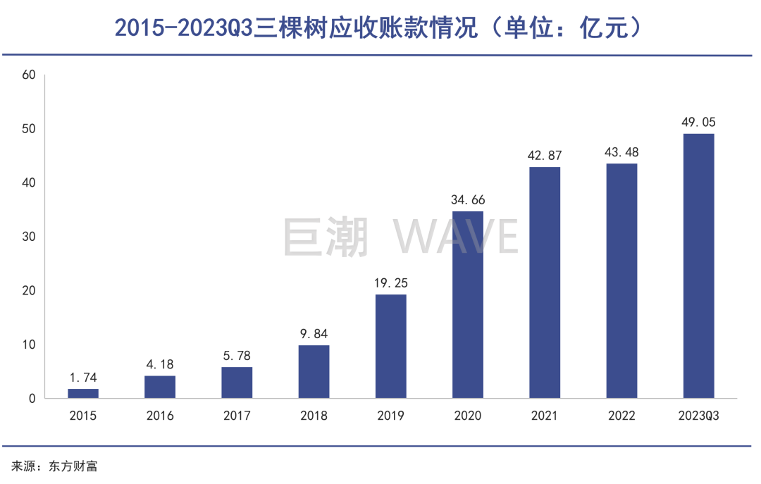 到2023年前三季度,公司應收票據及應收賬款已經變成了49.05億元。