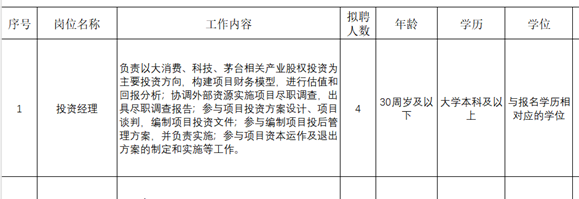 因此,茅臺此后也多有關(guān)注先進制造、科技類的投向。今年上半年,茅臺基金趁熱打鐵開放了社招的7個崗位,投資方向以大消費、科技、茅臺相關(guān)產(chǎn)業(yè)股權(quán)投資為主。這基本概括了上述被投企業(yè)的范圍,也明確了茅臺基金投資的核心方向。