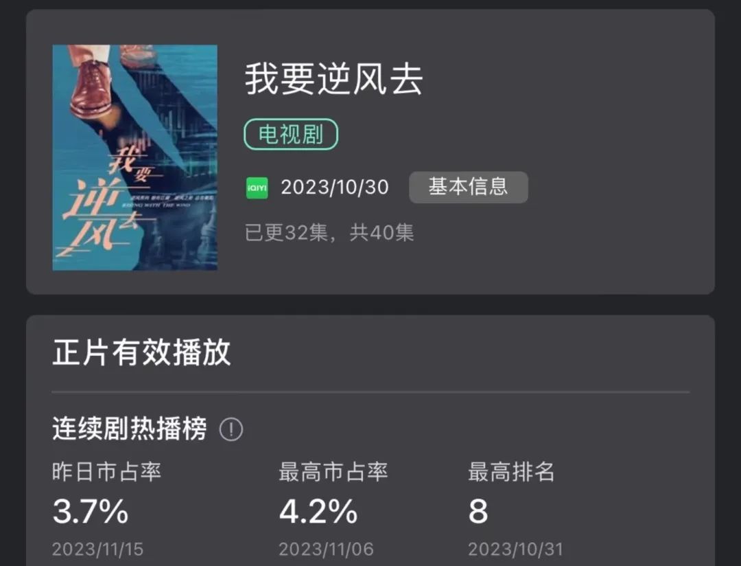 李現(xiàn)在《親愛的,熱愛的》之后,《赤狐書生》《古董局中局》豆瓣評分均不及格,票房成績也不理想;《山河令》之后,龔俊幾部作品接連失利,或口碑不佳,或熱度平平,最近的《我要逆風去》最高市占率僅為4.2%。