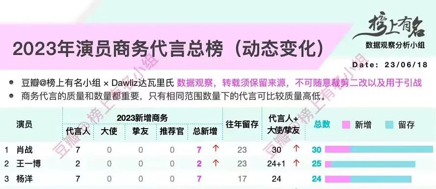 (2023年演員商務代言總榜(0618版,部分)圖源:豆瓣@榜上有名小組)