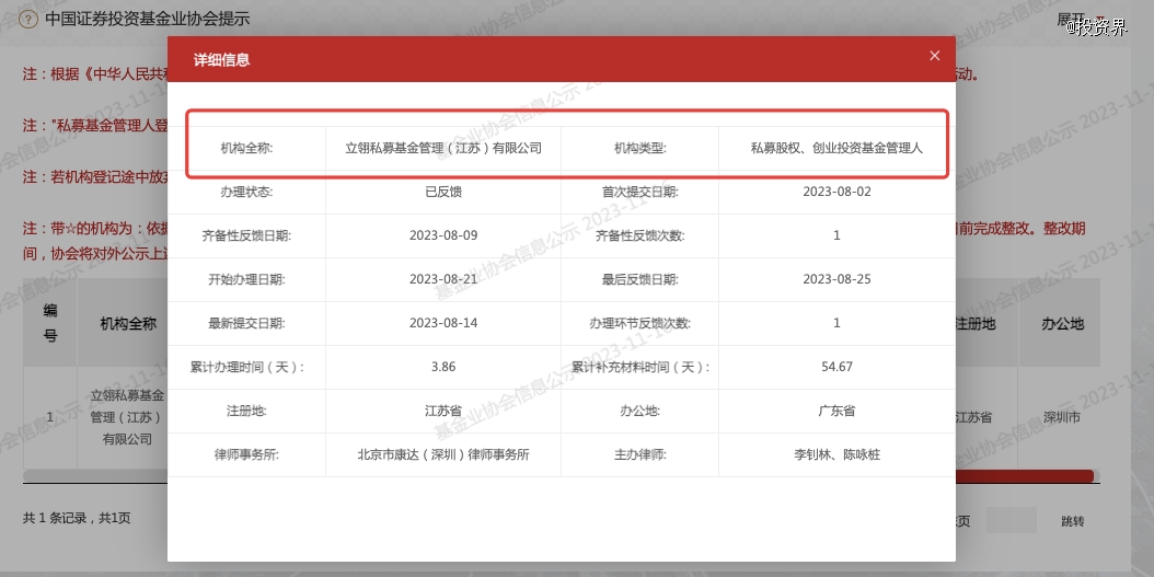 立翎基金,全稱為立翎私募基金管理(江蘇)有限公司。據(jù)中基協(xié)-私募基金管理人登記辦理流程公示信息顯示,立翎基金曾于今年8月提交登記,機(jī)構(gòu)類型為“私募股權(quán)、創(chuàng)業(yè)投資基金管理人”,目前辦理狀態(tài)更新顯示“已反饋”。