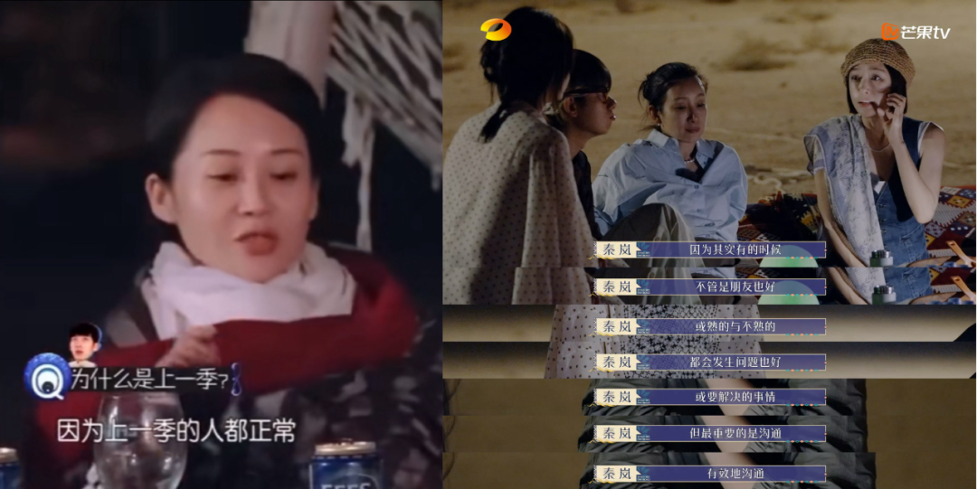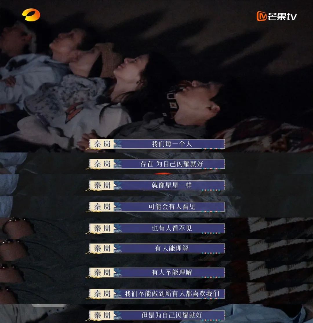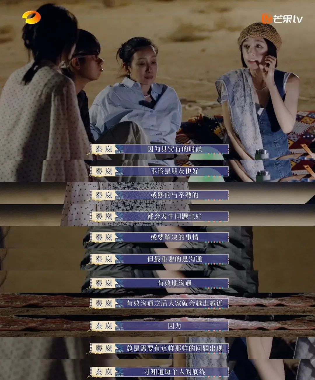 在第四期星空下的古城沙漠,七人團首度圍爐敞開心扉,辛芷蕾一吐對王安宇音樂節(jié)安排的心中不快,其坦誠表達卻令安宇心里面石頭落了地,對此秦嵐“有效溝通才會越走越近”“每個人存在為自己閃耀就好”的幾番總結(jié)令人醍醐灌頂,這些封神金句對秦嵐的口碑加持不亞于一部熱劇。
