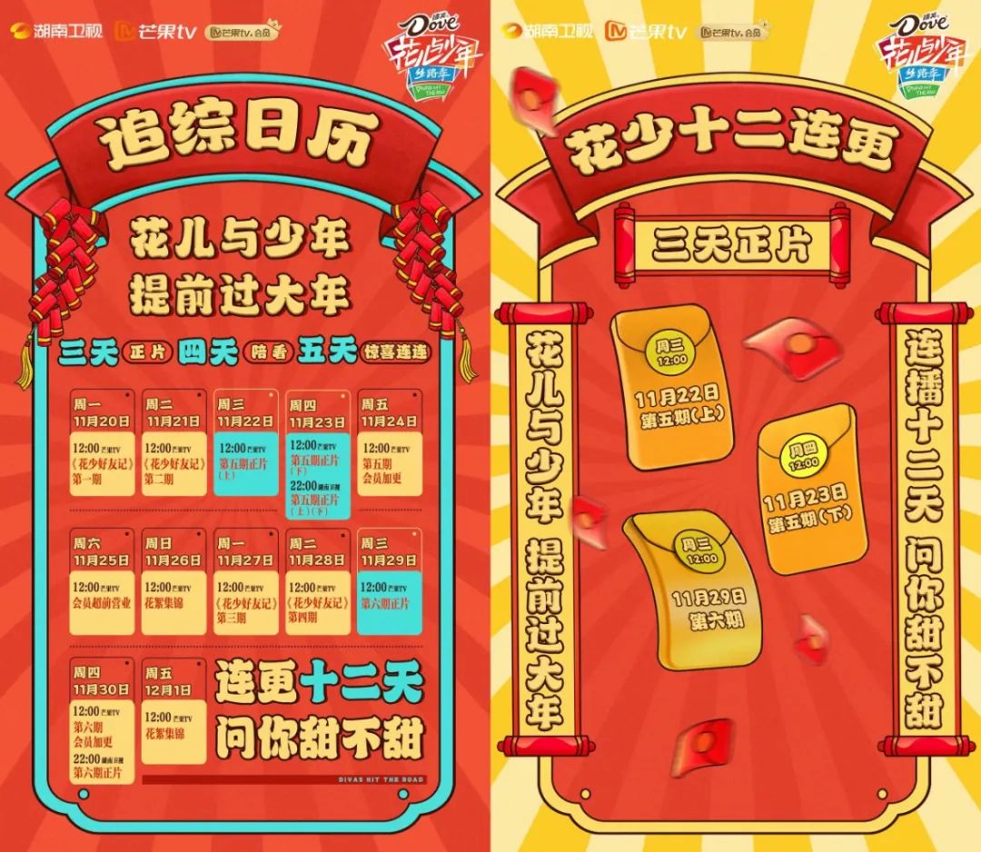 很顯然,能否快速響應(yīng)輿情火速開發(fā)衍生內(nèi)容,已成當下綜藝創(chuàng)制核心能力之一。這不,《花少5》正片才更5期,為了避免斷更給輿論場相關(guān)話題降溫,《花少5》目前在排播上已成功達成“連更十二天”不間斷追綜體驗。