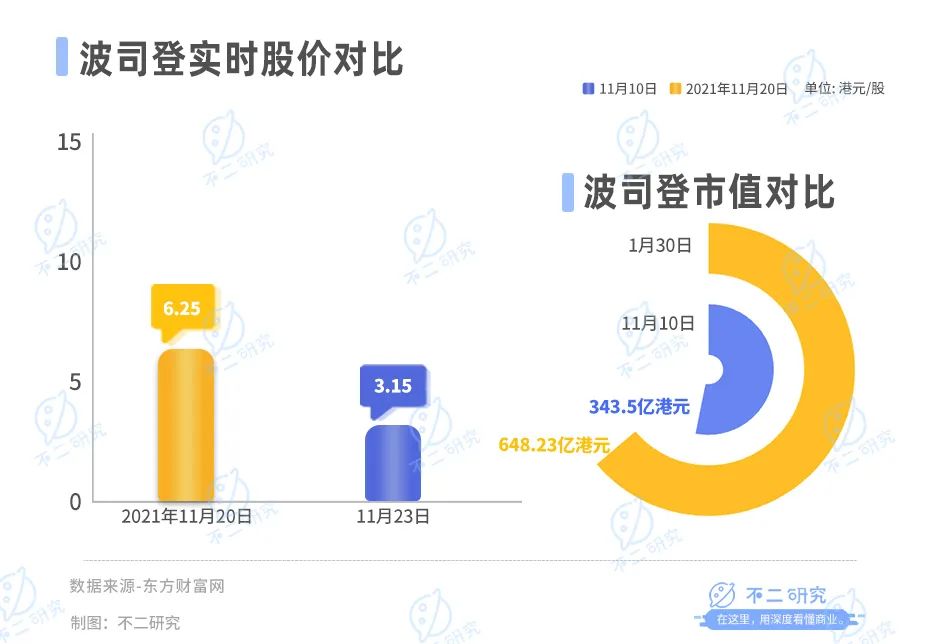 截至11月23日港股收盤,波司登報收3.13港元/股,對應總市值341.4億港元(約折合人民幣312.80億元);對比2021年11月的最高股價6.25港元/股,波司登的股價已經跌去超5成。