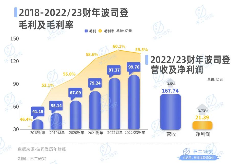 「不二研究」據其最新財年業(yè)績報告發(fā)現(xiàn):2022-2023財年,波司登營收為167.7億元,同比增加3.5%;同期凈利潤為20.62元,同比增加3.7%。